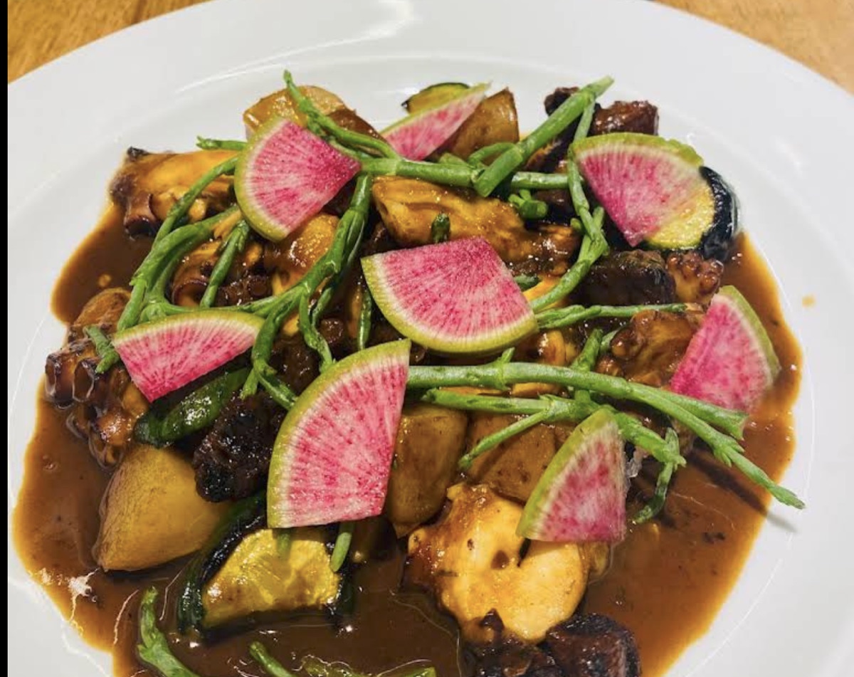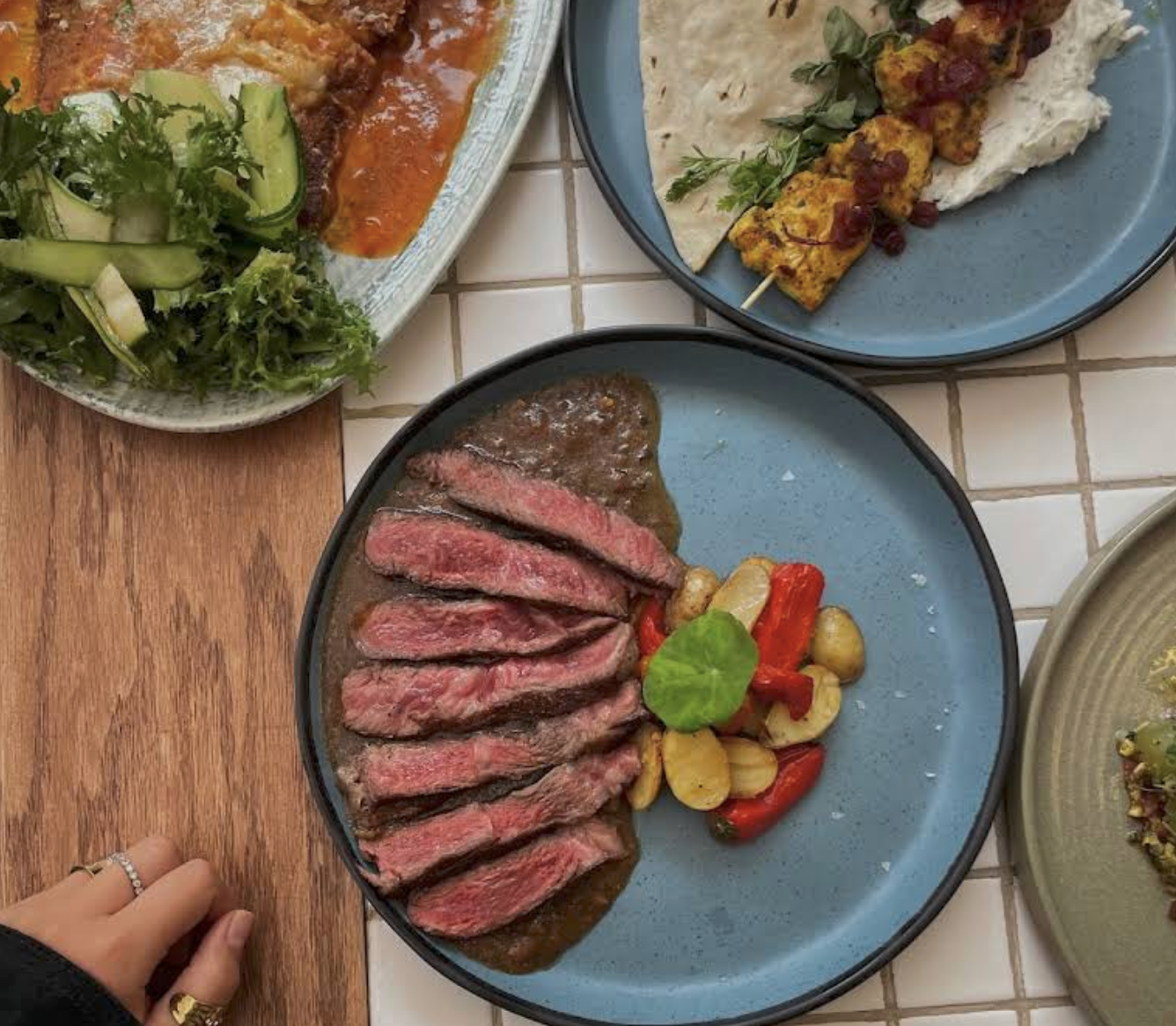 ""Capri-like" ambiance, with an airy, sunlit setting featuring a combination of a cozy dining room and a scenic backyard. Good for dates! Oly specializes in elevated Mediterranean cuisine, described as charming, high-quality, and ideal for special occasions."