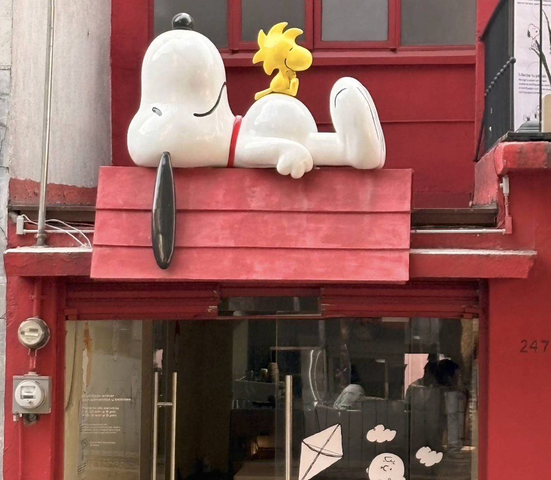 "The official Snoopy café — every dish designed around the Peanuts universe, pet-friendly with a special menu for dogs, and a giant Snoopy sleeping on the roof."