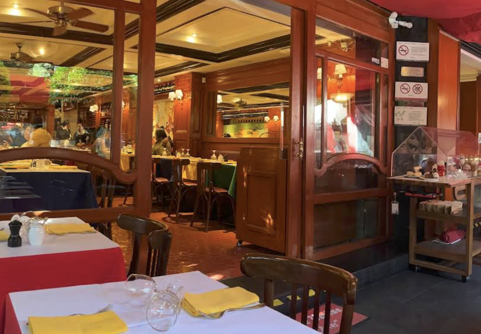 “One dish, no menu, no decisions: walnut salad then two rounds of sliced entrecôte drowned in a legendary tarragon-butter house sauce.”