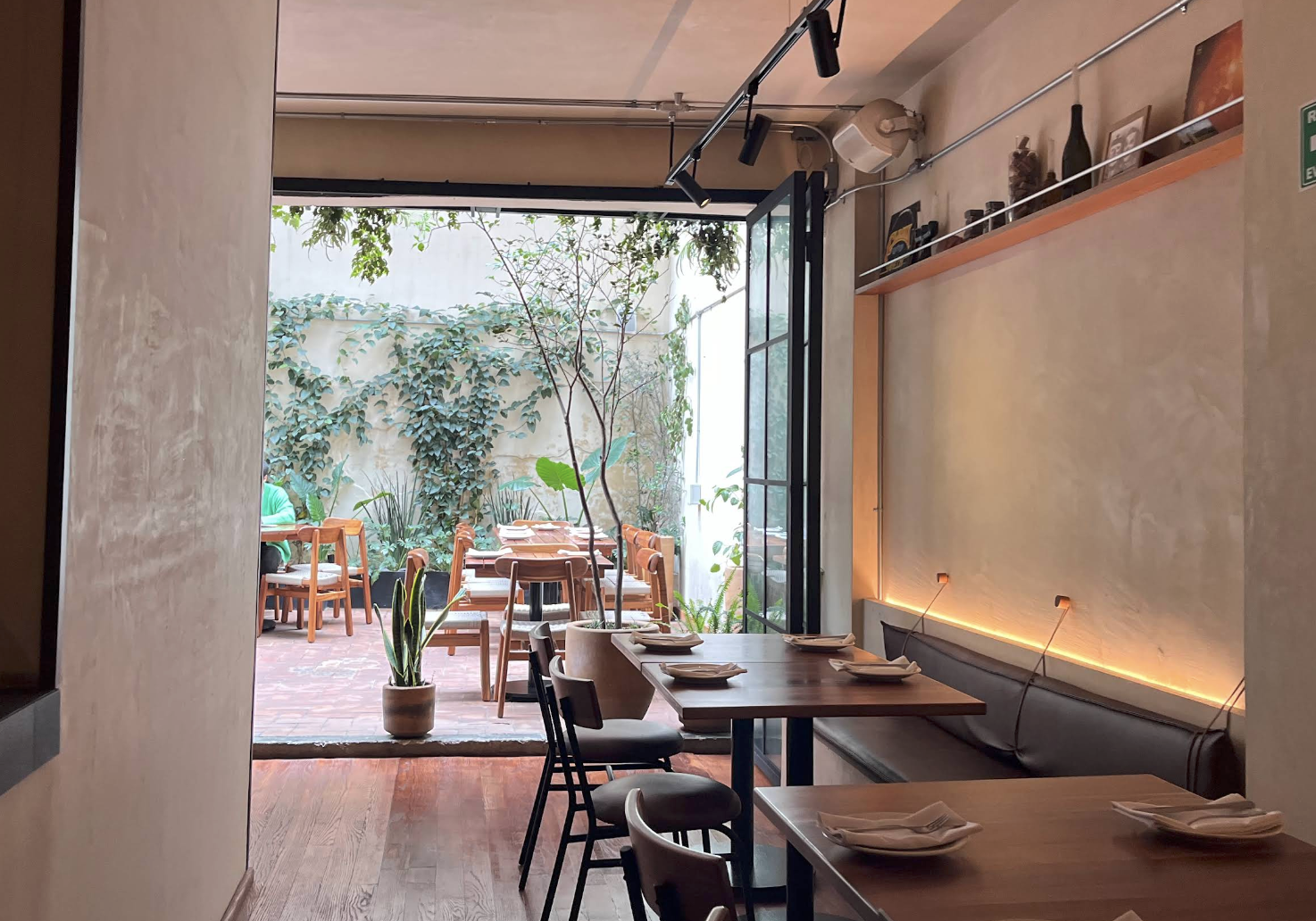 “An author's grill hidden in Roma Norte where every dish passes through live fire — the cave-like space divided into a bar, open kitchen counter, and leafy terrace makes every visit feel like a discovery.”