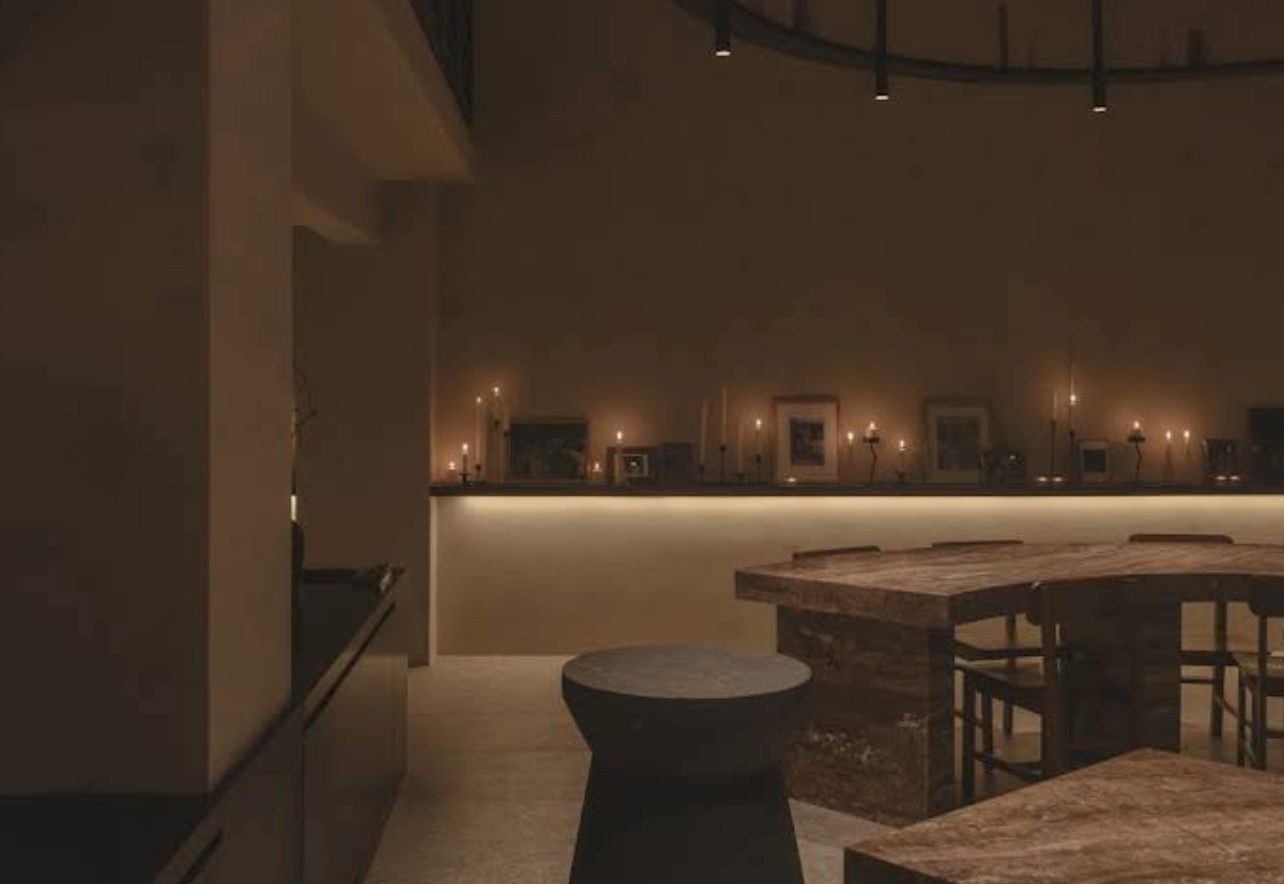 “A family project that treats corn as a living archive — each dish is an inherited recipe refined and returned to the present, anchored by a dramatic red marble communal table that doubles as a design statement.”