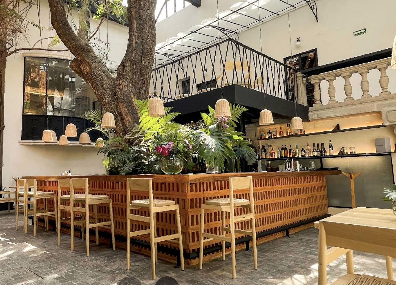 “A massive, tree-filled patio café and bakery in Roma Norte run by Barcelona pastry star Xano Saguer (co-founder of EspaiSucre). The chocolate croissant is legendary. Huge covered patio with a tree growing through the bar — one of the best brunch rooms in the city.”